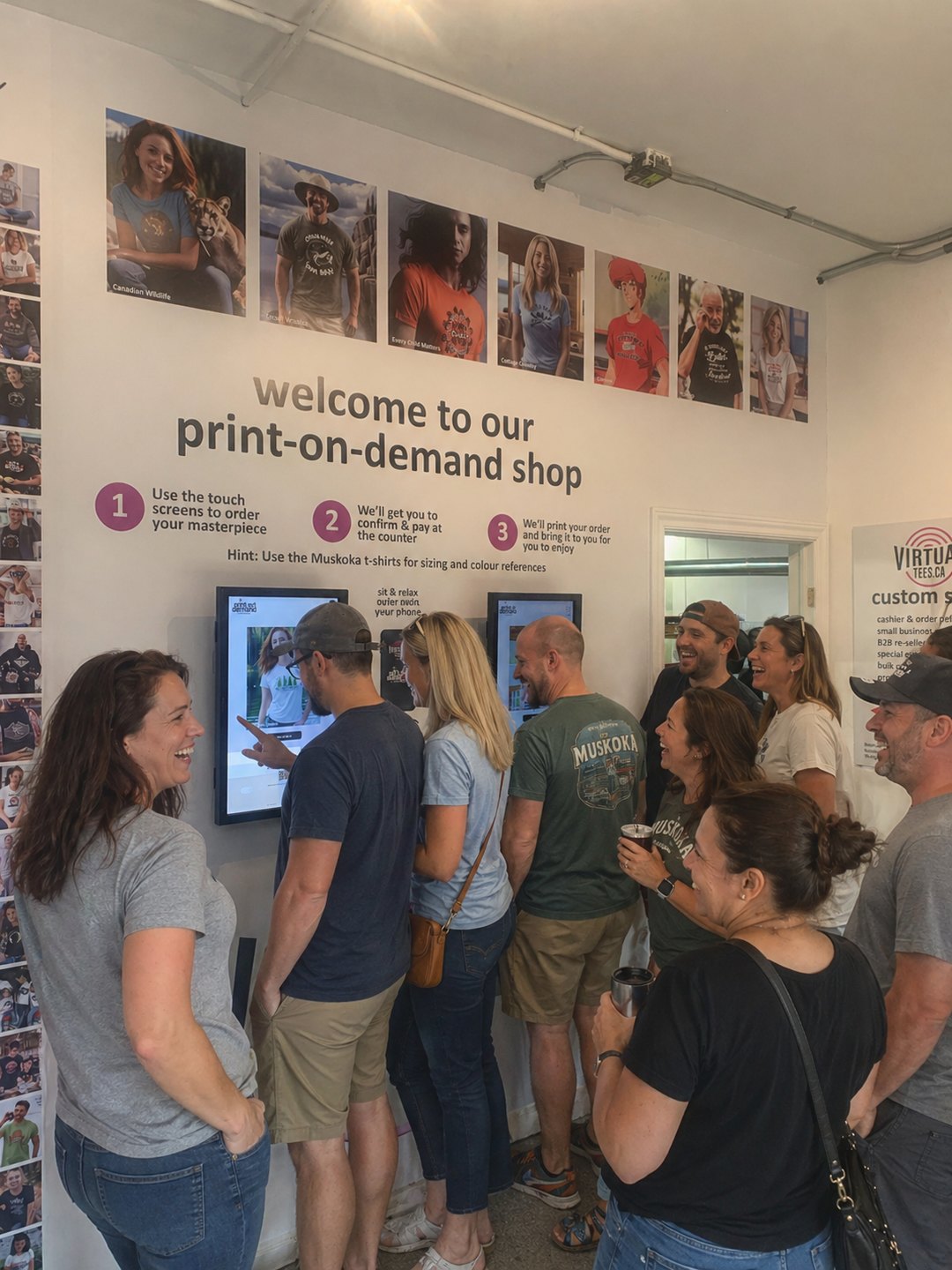 Muskoka collections, graphic tees, and specialty retail programs printed on demand.